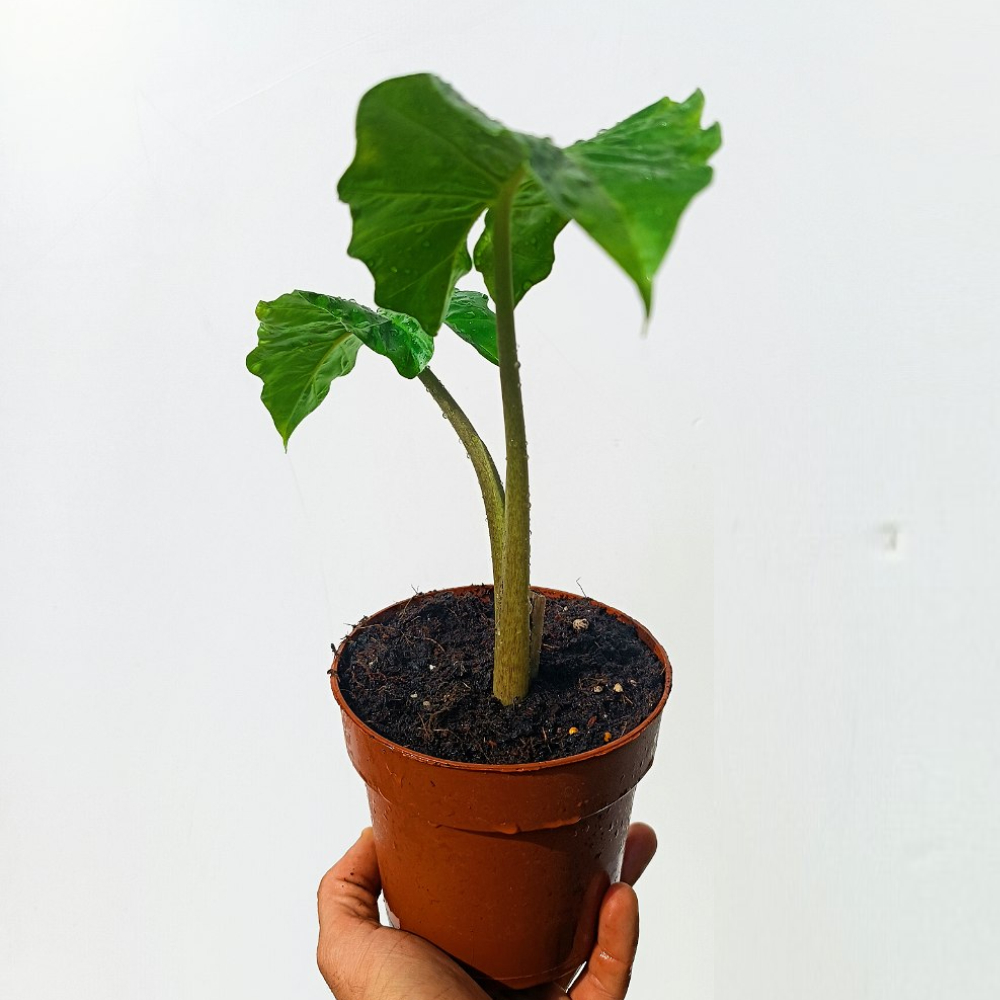 🌿 Las hojas de esta alocasia son onduladas, de forma lanceoladas y crecen a partir de un tallo fuerte de color verde púrpura. Es compacta, se reproduce muy rápidamente y es de las alocasias más resistentes al frío. Con la llegada del invierno, el crecimiento de la planta se detiene y se queda en Stand-By hasta la llegada de mejores temperaturas. Nosotros cultivamos algunas en exterior, y aunque es cierto que el invierno le supone una temporada dura, si está en suelo libre y ligeramente protegida con una tela o plástico por encima, sale adelante sin problemas incluso manteniendo algunas de sus hojas. Una buena opción para quien busca crear un jardin tropical de clima continental.