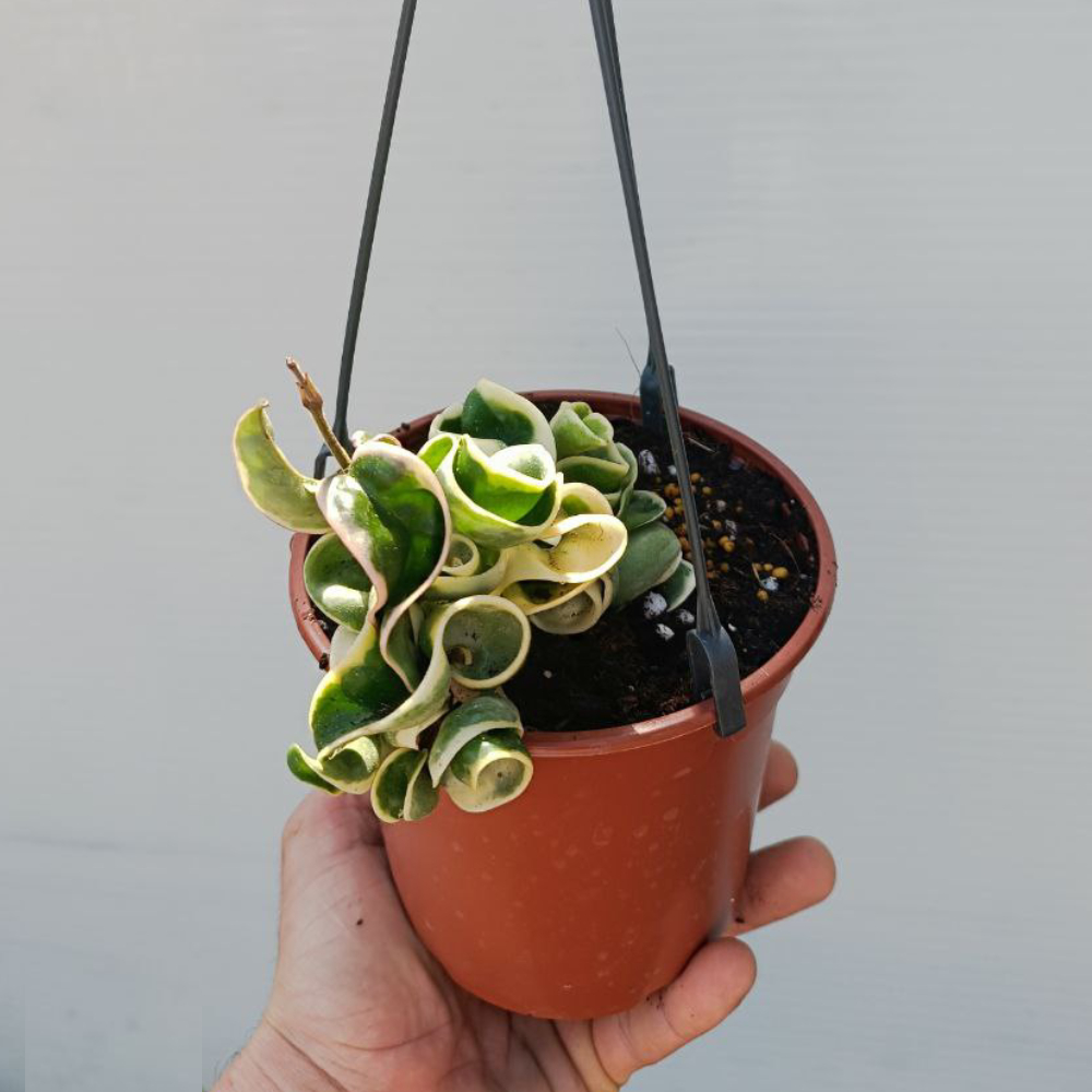 La Hoya Compacta Variegada es una de las plantas más codiciadas por coleccionistas y amantes de las plantas exóticas. Su follaje en espiral y su variegación crema y verde intenso la convierten en una auténtica obra de arte viva.